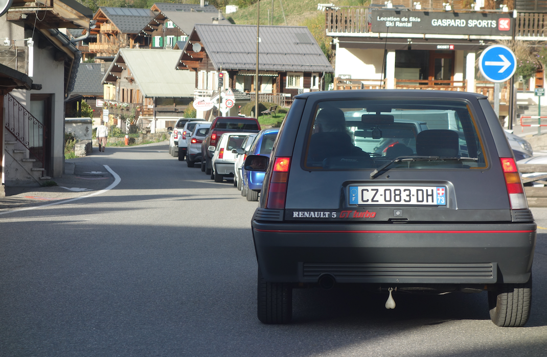 c'était comme ça toute la journée, coincée dans les bouchons, à la queueleuleu entre les campings car et les tracteurs, le seul moment où on a pu déclencher les turbos c'est sur un grand parking désert où on s'est arrêté papoter pendant une heure pour rien dire