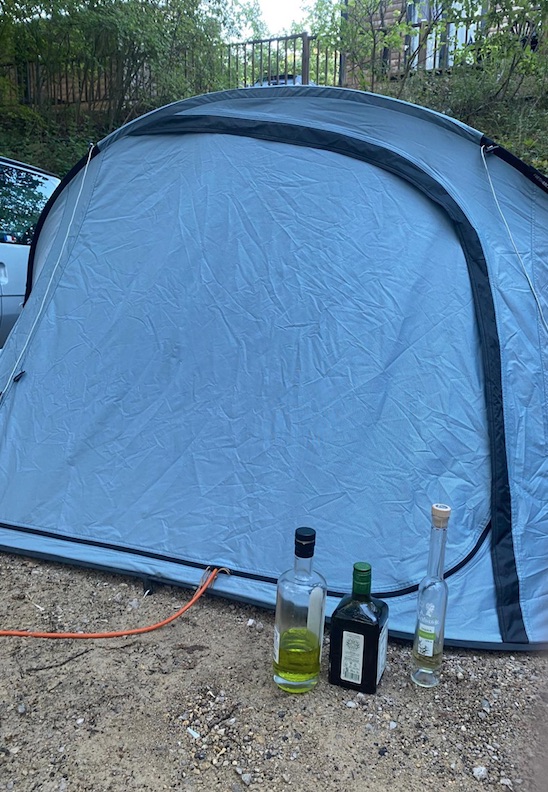 au petit matin seuls quelques indices laissent imaginer ce qui a pu se passer la nuit dernière, la tête de certains participants est bien explicite aussi, mais par esprit de FRAtitude on ne vous montrera pas les photos, pour le coup y aurait pas eu besoin de les flouter, elles l'étaient naturellement ! :crazy: